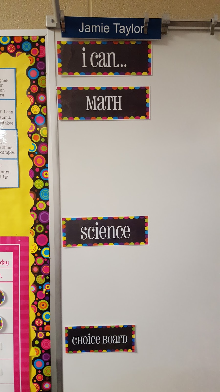 "I CAN" magnets so I can post my daily objective under them with expo markers. My Choice Board so I can write down what my students can do when they finish their work. |